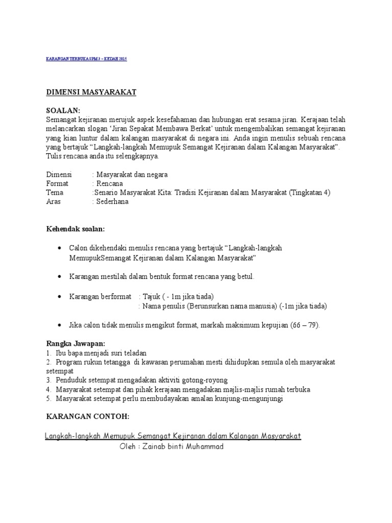 Karangan Terbuka Spm 3 Langkah Langkah Memupuk Semangat Kejiranan Dalam Kalangan Masyarakat 2016 Pdf